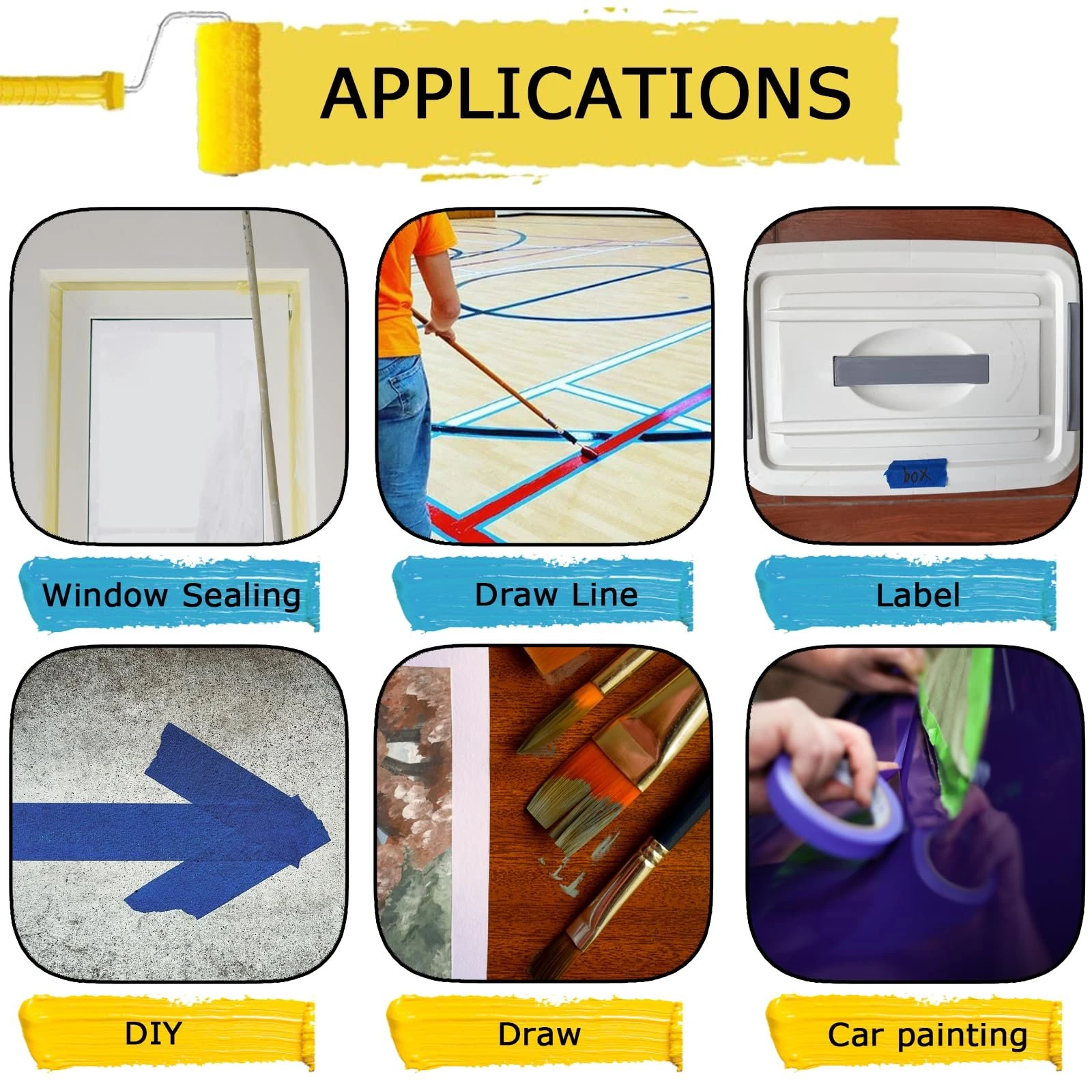 - Wide Applications – Blue pinstriping tape has impermeable, writable and sealing ability. General purpose blue paper tape suitable for painting supplies, light bundling, trimming, caulking, ceilings, wrapping, marking, zoning, etc(PS: all under room temperature, high temper may cause glue residue, tape broken). 094 inch blue painter tape is excellent for any personal, professional, industrial project. Works well for touch-up work, guard floor, furniture(create color-dividing effects or patterns).