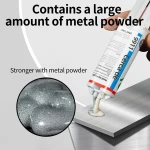 - The products are of high quality and once cured, the metal repair adhesive forms a strong and stable bond. Compared with traditional epoxy resin, this product has added metal powder, high adhesion and good hardness, as well as a certain toughness.