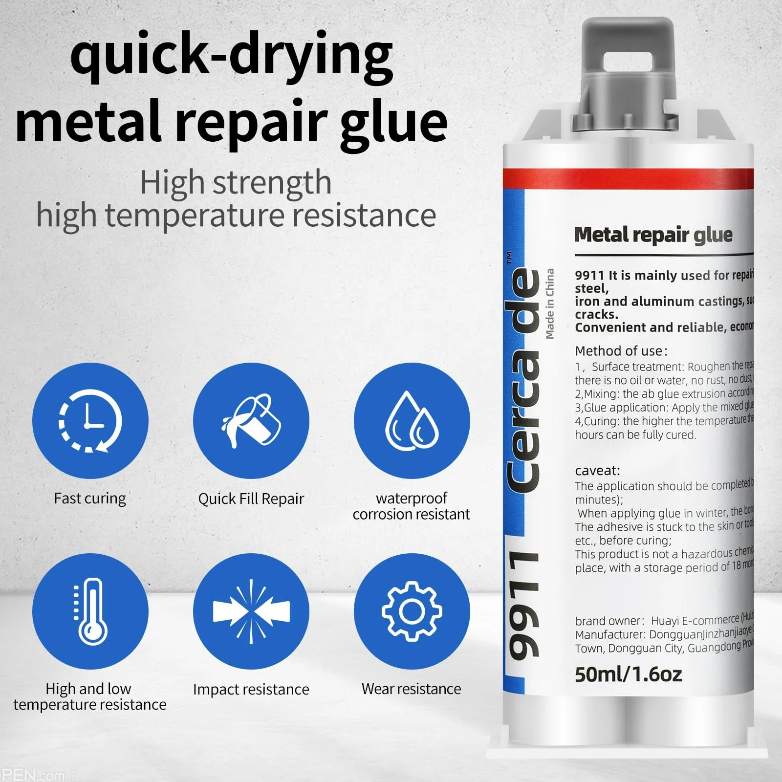 Cerca de Metal Repair Glue,Strongest Glue for Metal to Metal,Suitable for Metal,Stone, Plastic, Aluminum, Steel, All Purpose Repair Glue,Liquid Metal Filler,epoxy,Weld,Heavy Duty, Waterproof,1.6oz