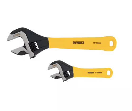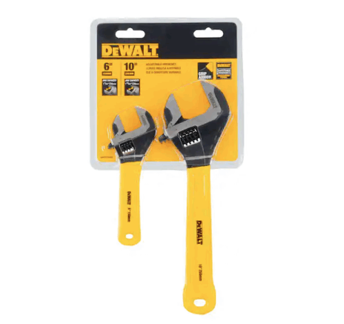 This 2-pack DEWALT Dip Grip Adjustable Wrench set has Grip Armor coating to help prevent the vinyl grip from peeling off. This vinyl grip also helps provide control in wet environments, perfect for outdoor use. Both wrenches have a wide jaw capacity to cover a range of sizes.