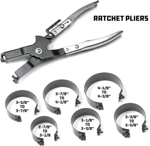 Powerbuilt Piston Ring Compressor Tool Set for Car Engine, Vehicle Maintenance Clamps, Ratchet Pliers, Storage Case
